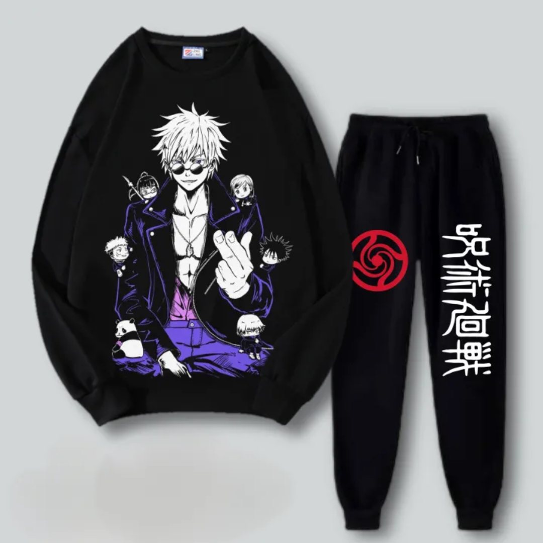 Product Name: Hemo Black Gojo Sensei Anime Printed Summer Sweatshirt and Jogger Set