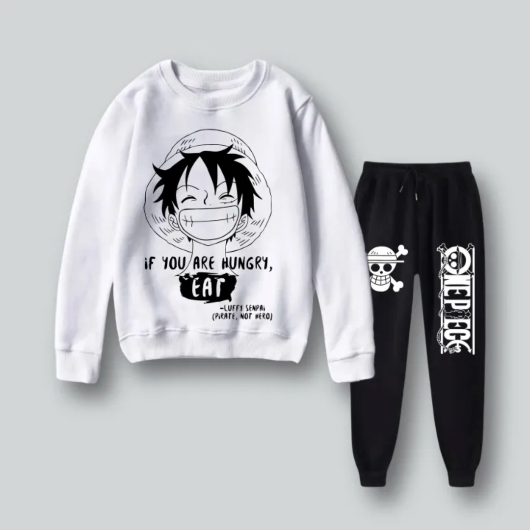 Product Name: Hemo White Luffy Anime Printed Summer Sweatshirt and Jogger Set